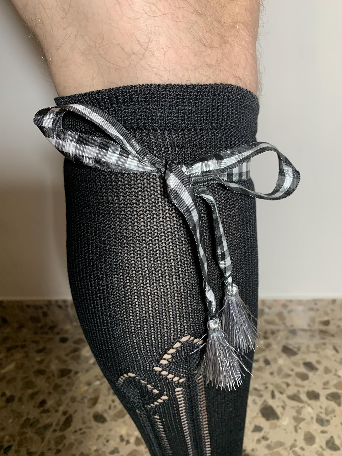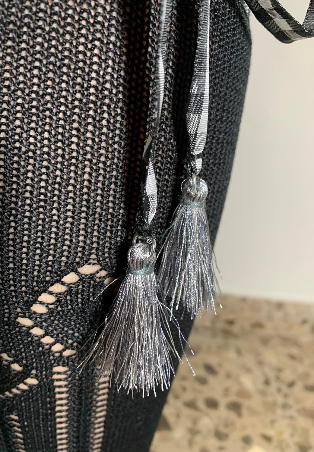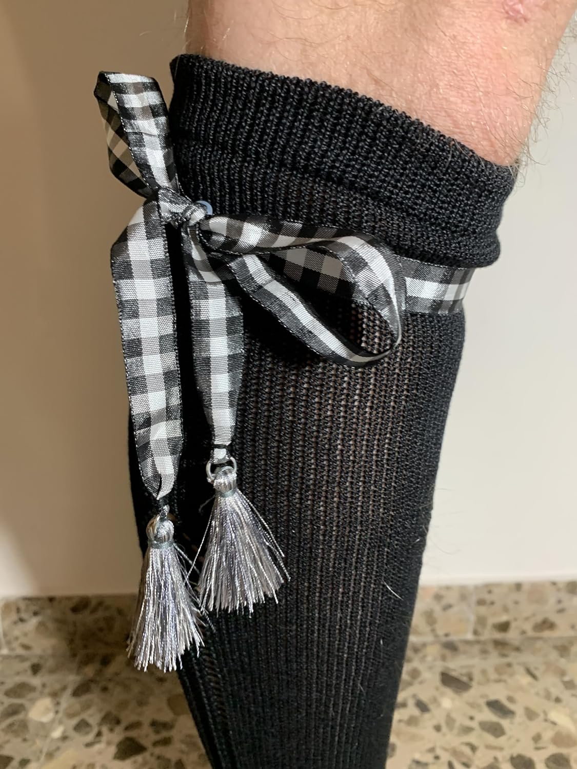 Cinta de 1,5 cm de ancho y cuadros tradicionales en blanco y negro con borlas en PLATA o NEGRO