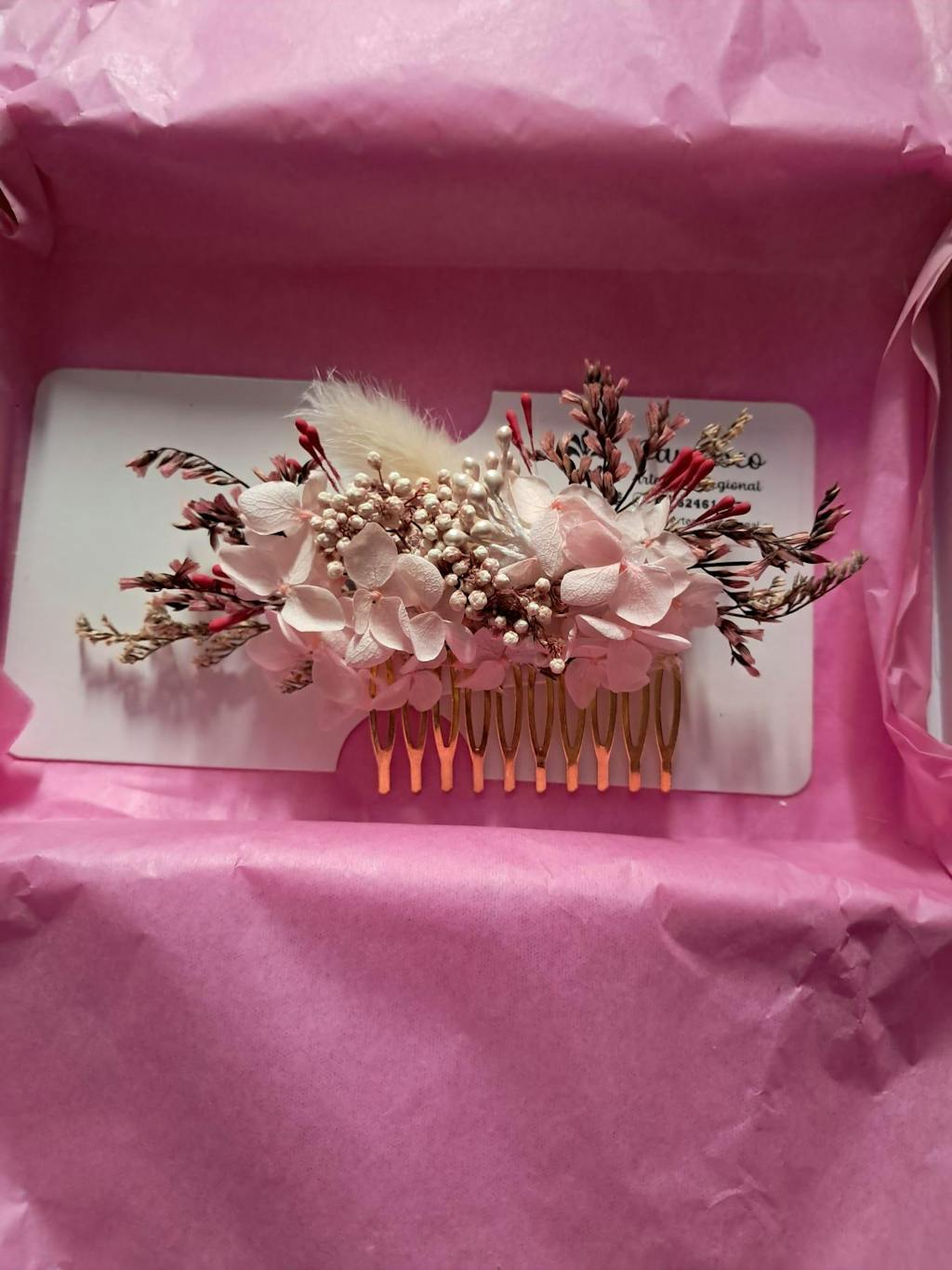 PEINETA DE FLORES PRESERVADAS DAMASCO ARTESANÍA REGIONAL
